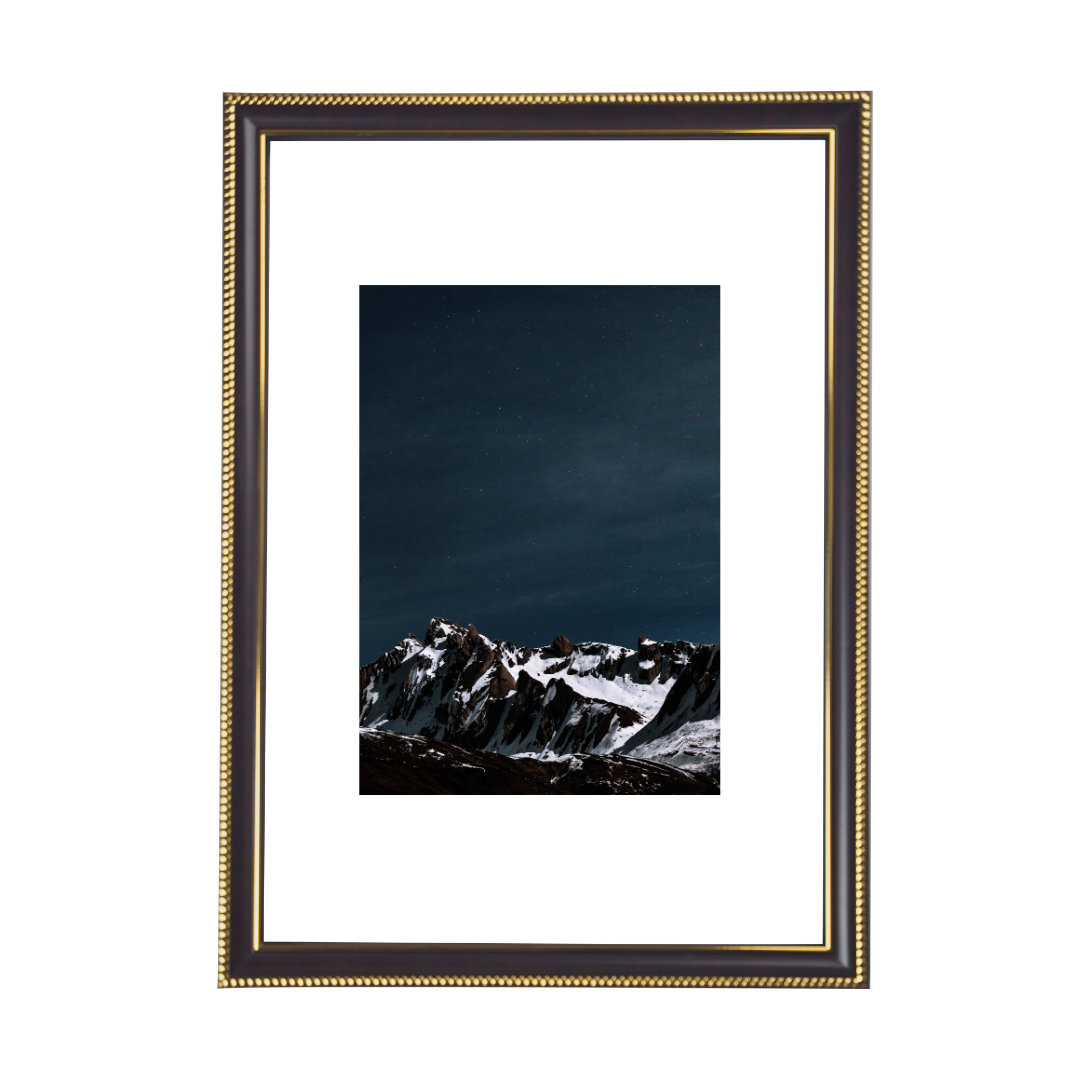 Midnight Crown Frame blends deep, velvety darkness with a delicate gold crown edge, creating a regal, dramatic presence. A luxurious accent that transforms every artwork into a captivating, night-inspired masterpiece.
